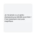 Rend le cheveu plus malléable et plus facile à démêler. Prévient la casse lors du brossage / peignage.